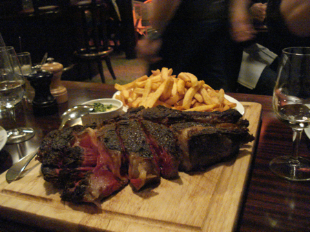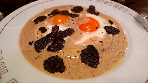Hi Wes, the chalkboard menu changes all the time so it’s hard to name a dish, but my favorites over time have been a thick cut steak with bone marrow melting on top, a plate of sunny side up eggs with shaved black truffles, and a tarte Tatin with thick cream. – Meg