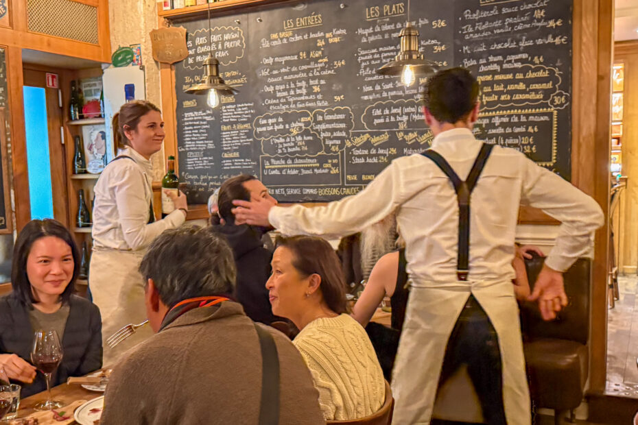 L’Ami Louis is one of the most atmospheric restaurants in Paris. It’s dark and dramatic, with white jacketed servers bringing overflowing plates of snails, foie gras, and other classic French dishes. The roast chicken, with its accompanying tower of shoestring fries, is as good as everyone says it is. But L’Ami Louis is also one of the most clubby restaurants in Paris. It’s filled with regulars, it’s hard to get a table, and the prices are high enough to scare most tourists away. That’s probably by design. If you need to ask how much the roast chicken costs (it inches closer to 100 euros every year), then L’Ami Louis is probably not for you. It remains one of our favorite places in Paris, when someone else has gone to the trouble to book and ideally when someone else is paying.
