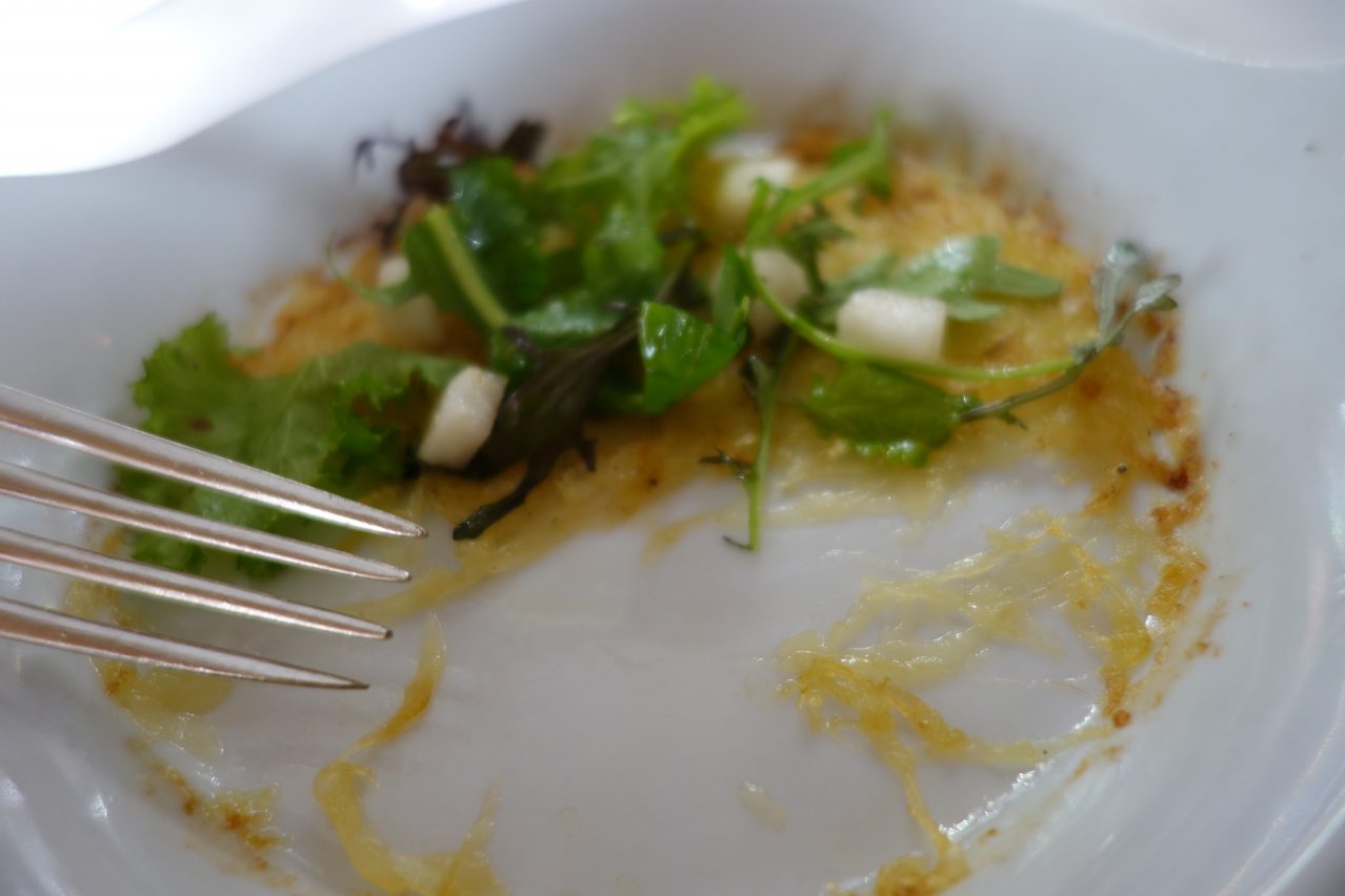 There seems to be more improvisation happening in Passard’s kitchen than among any of the other three-star restaurants. While certain vegetable dishes (the sushi, raviolis, couscous) have been a feature of the menu for years, plenty of other dishes (the sole with cabbage, the baby boar with turnips) seem to have been made up on the spot. I tend to enjoy a spontaneous riff, but others might prefer to have more composed and perfected dishes. Passard’s flavors are easy to love, but his forms – purée after mousse after velouté, can get a little lazy.