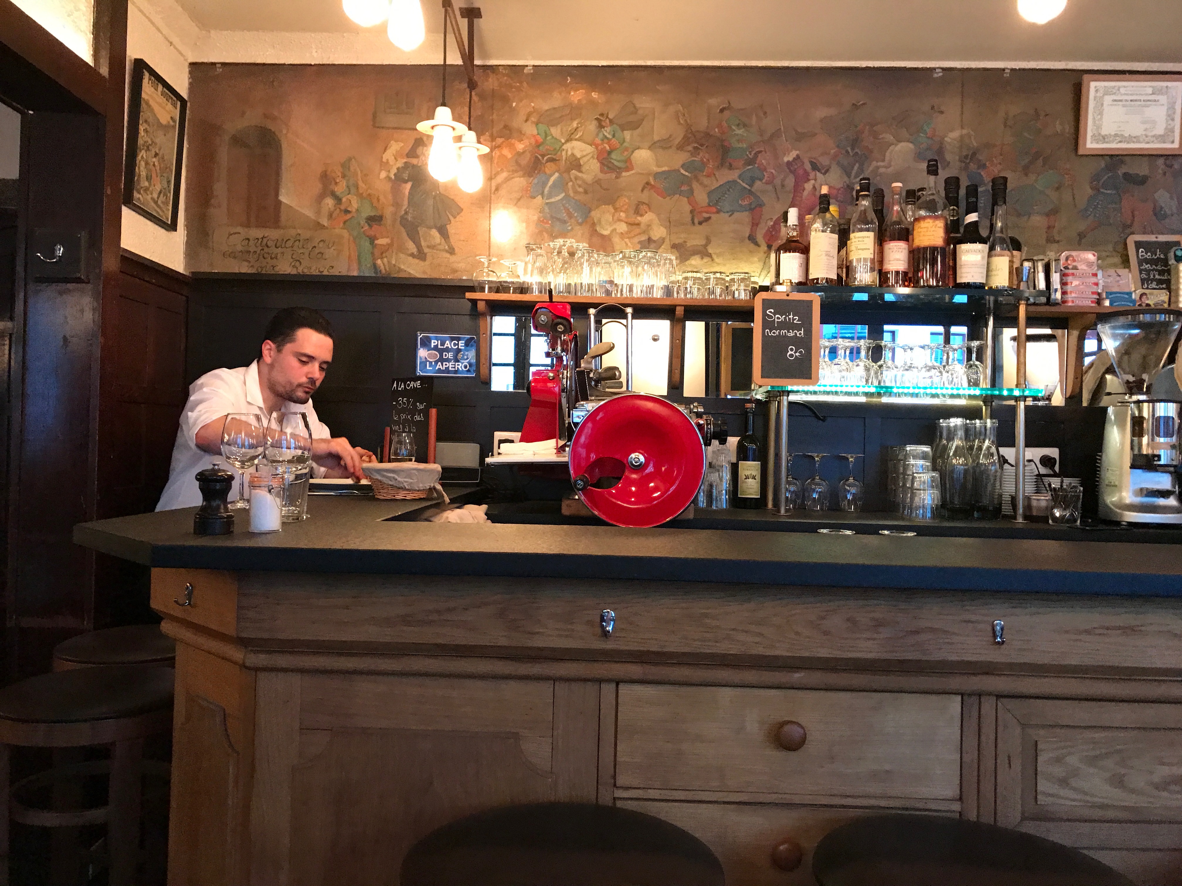 Not Drinking Poison in Paris (2011) calls this “the perennial fallback reservation of every visiting wine industry person I know” and says it “ain’t broke” but then goes on to detail a great number of faults with the experience. He concludes that “as long as the team behind Le Repaire de Cartouche can tolerate the modern world, and as long as the modern world can tolerate the team behind Le Repaire de Cartouche, it will continue to be possible to have a perfectly satisfying meal there.”