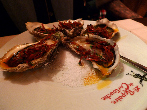 Barbra Austin (2011) says “yes, many people have had terrible service experiences at Le Repaire. But aside from the fact that it is extremely difficult to procure a carafe of water here, I haven’t really had any problems. And the food, as a visit early this year reaffirmed, is a fantastic, high fat French feast. House made terrines and pâtés, foie gras all over the place, pork in many forms, wild game in season…Prepare to be stuffed.”