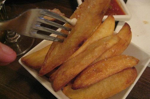 Alexander Lobrano (2013) “The bowl of frites that came with our mains were some of the best I’ve eaten in Paris for a long time–cooked in duck fat so that they were crunchy and golden, and garnished with cracked black pepper and coarse sea salt… I’ve always loved Christian Etchebest’s cooking and his warm, alert style of hospitality.”