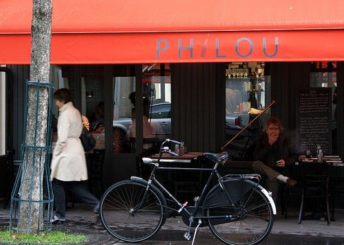David Lebovitz (2012) wants to love Philou, but they ran out of just about everything he tried to order. He does appreciate that “they have an ample list of wines by the glass (€4), 1/2 liter, or full liter (€26), all democratically priced.”