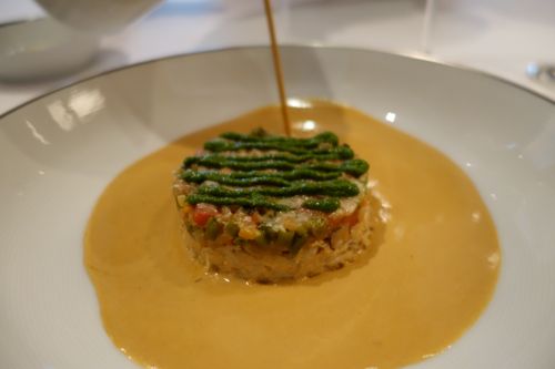 We’ve gone here twice for special lunches, which were generous, excellent and less than half the price of dinner, 82 euros plus beverages. It was nice the second time to be greeted by name and to renew acquaintance with Jean-Marie, who, if he doesn’t really enjoy making every guest feel important, is a superb actor.